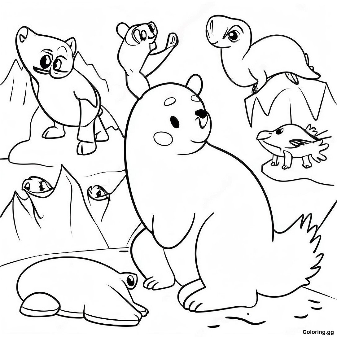 आर्कटिक जानवर रंग भरने वाला पृष्ठ का प्रिंट करने योग्य PDF डाउनलोड करें