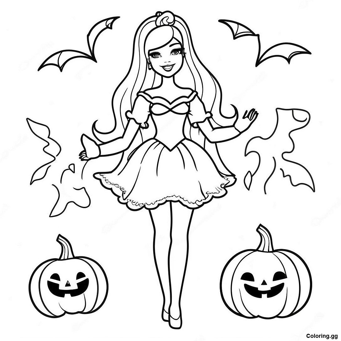बार्बी हैलोवीन रंग भरने वाला पृष्ठ का प्रिंट करने योग्य PDF डाउनलोड करें