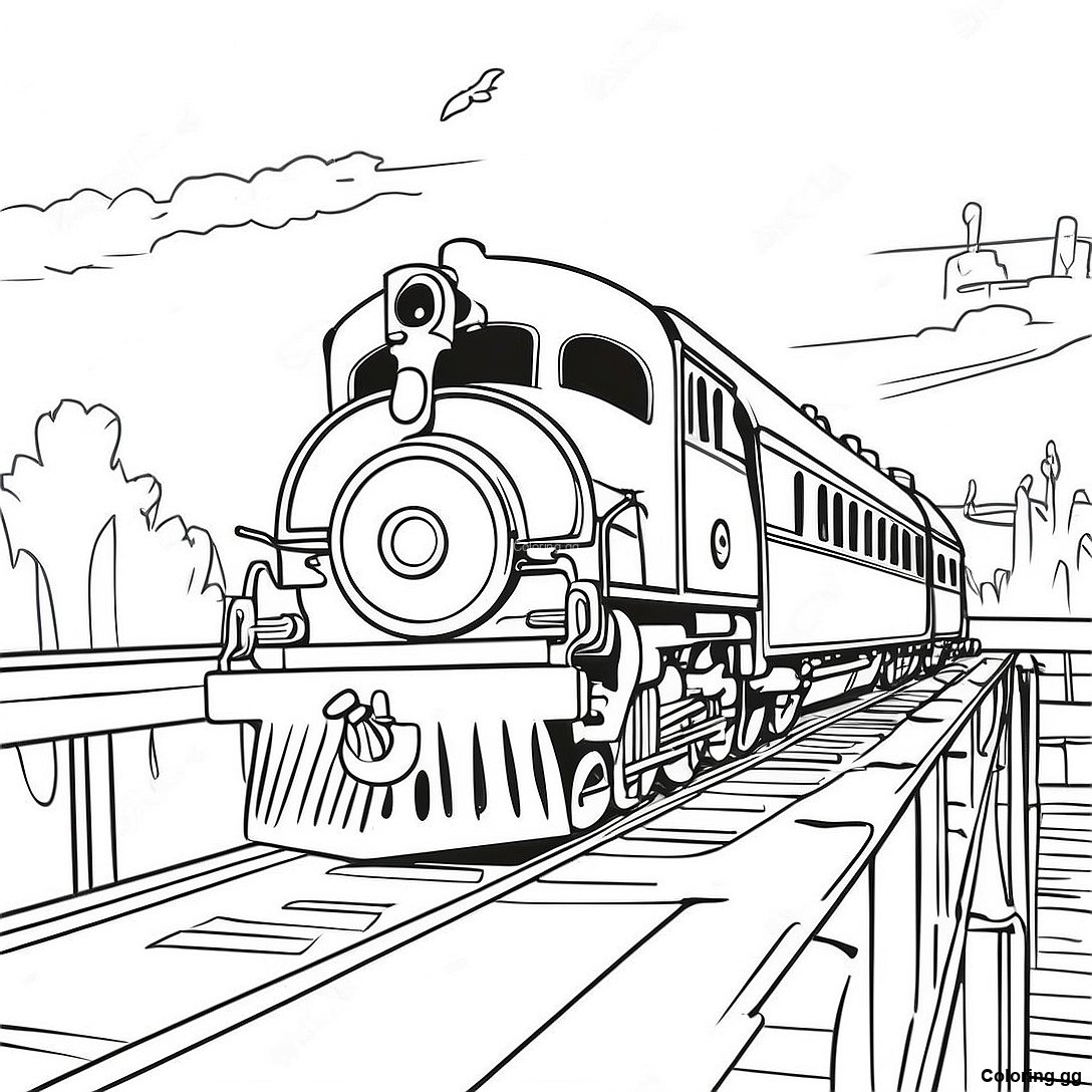ब्रिज पर पुरानी ट्रेन रंग भरने वाला पृष्ठ का प्रिंट करने योग्य PDF डाउनलोड करें