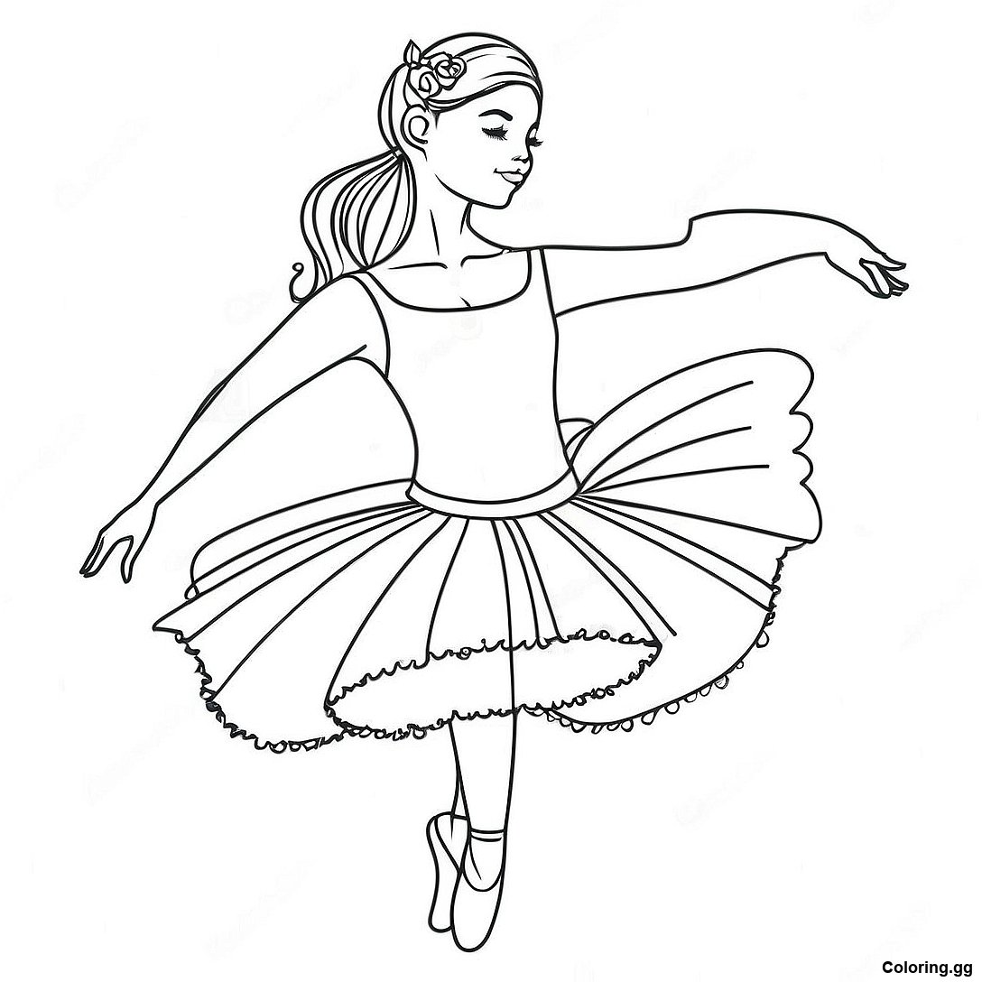 चमकदार बैले डांस जूतियों के साथ बैलेरीना रंग भरने वाला पृष्ठ का प्रिंट करने योग्य PDF डाउनलोड करें