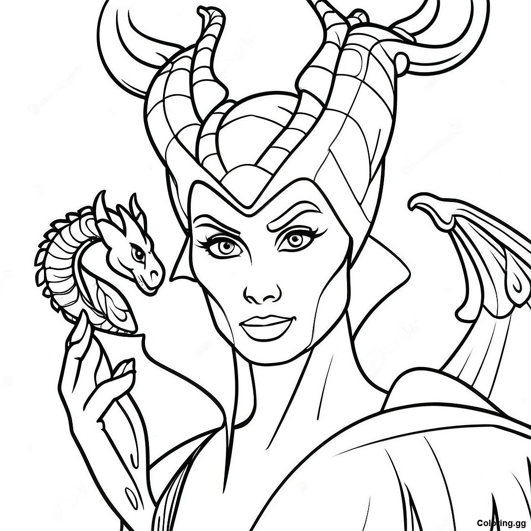 ड्रैगन के साथ मैलेफिसेंट रंग भरने वाला पृष्ठ का प्रिंट करने योग्य PDF डाउनलोड करें