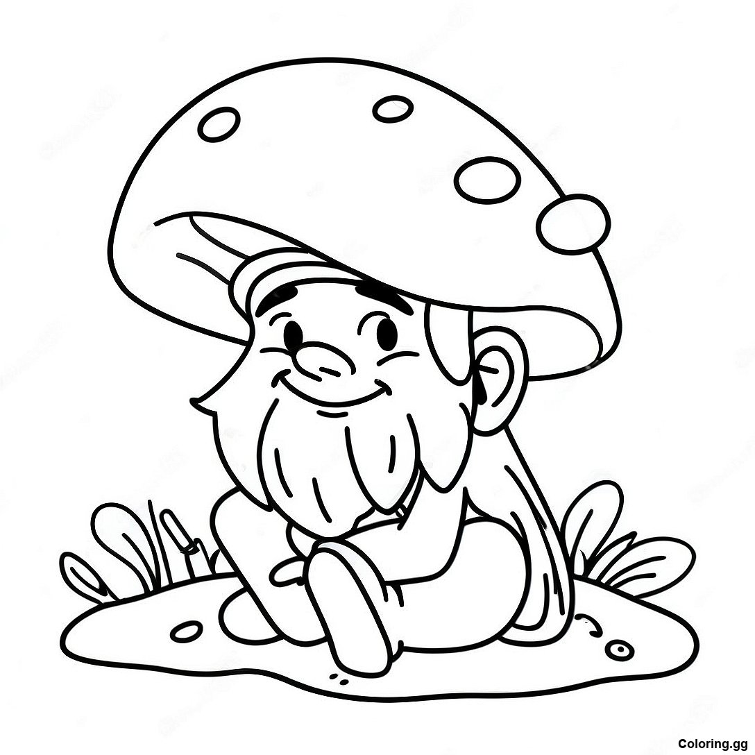 एक मशरूम के नीचे सोया हुआ ग्नोम रंग भरने वाला पृष्ठ