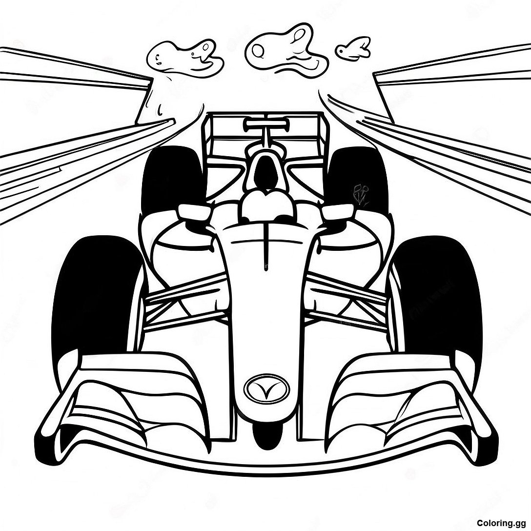 F1 रेस कार रंगीन डिकल्स के साथ रंग भरने वाला पृष्ठ