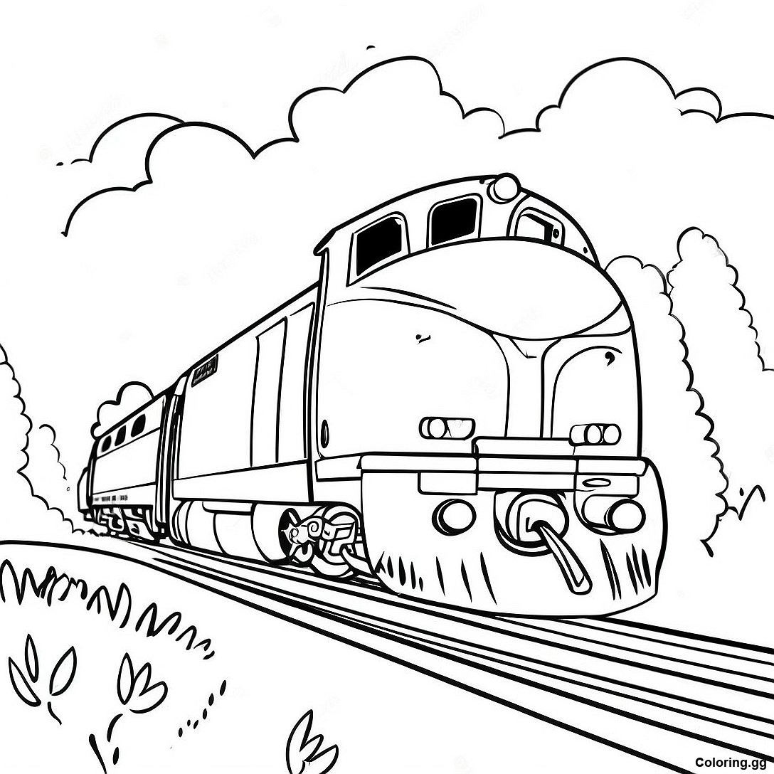 गाँव के बीच तेज़ ट्रेन रंग भरने वाला पृष्ठ
