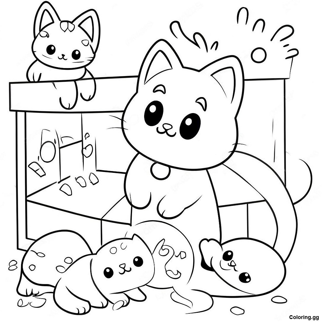 गैबी का गुड़िया घर खेलते हुए बिल्ली के बच्चे रंग भरने वाला पृष्ठ का प्रिंट करने योग्य PDF डाउनलोड करें