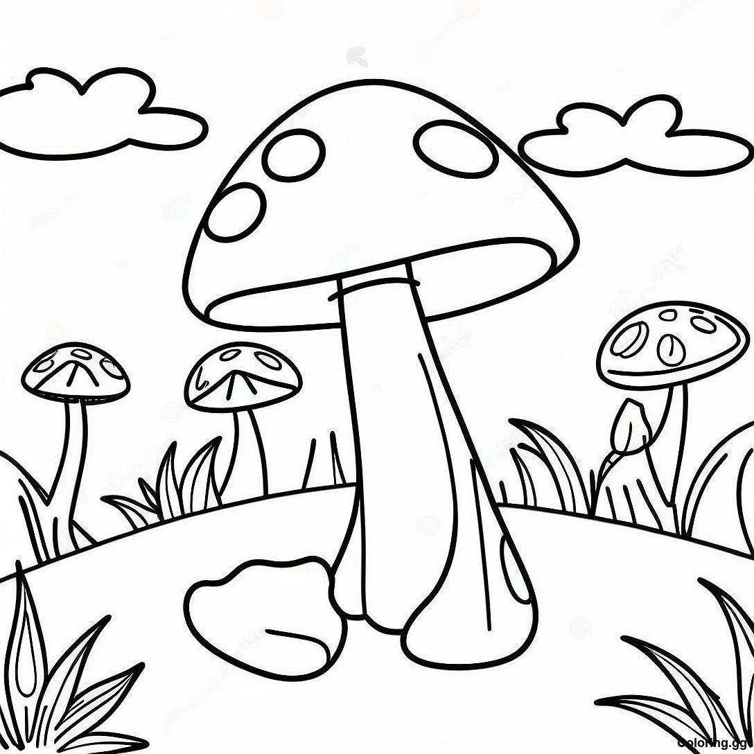 ग्रोवी मशरूम परिदृश्य रंग भरने वाला पृष्ठ का प्रिंट करने योग्य PDF डाउनलोड करें