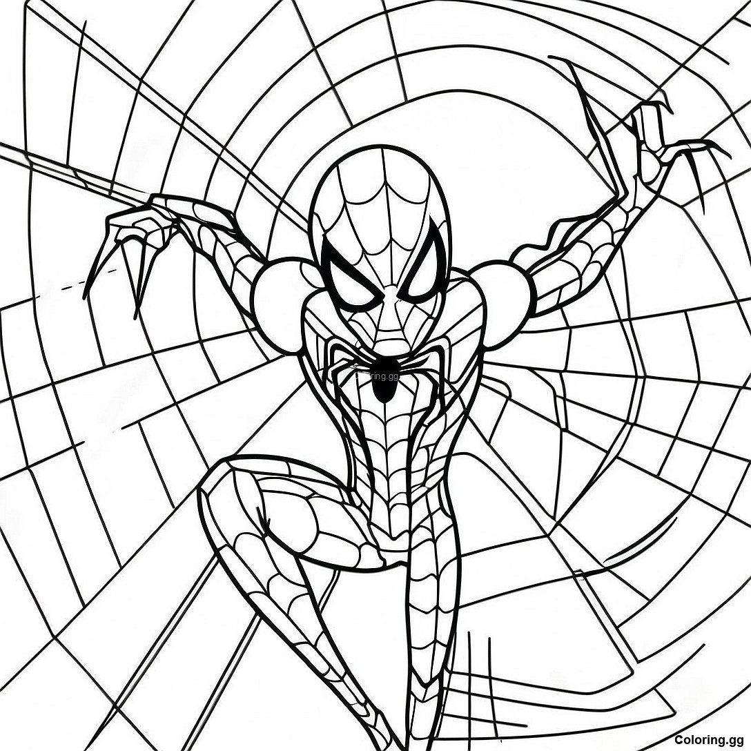 स्पाइडर मैन जालों के साथ रंग भरने वाला पृष्ठ