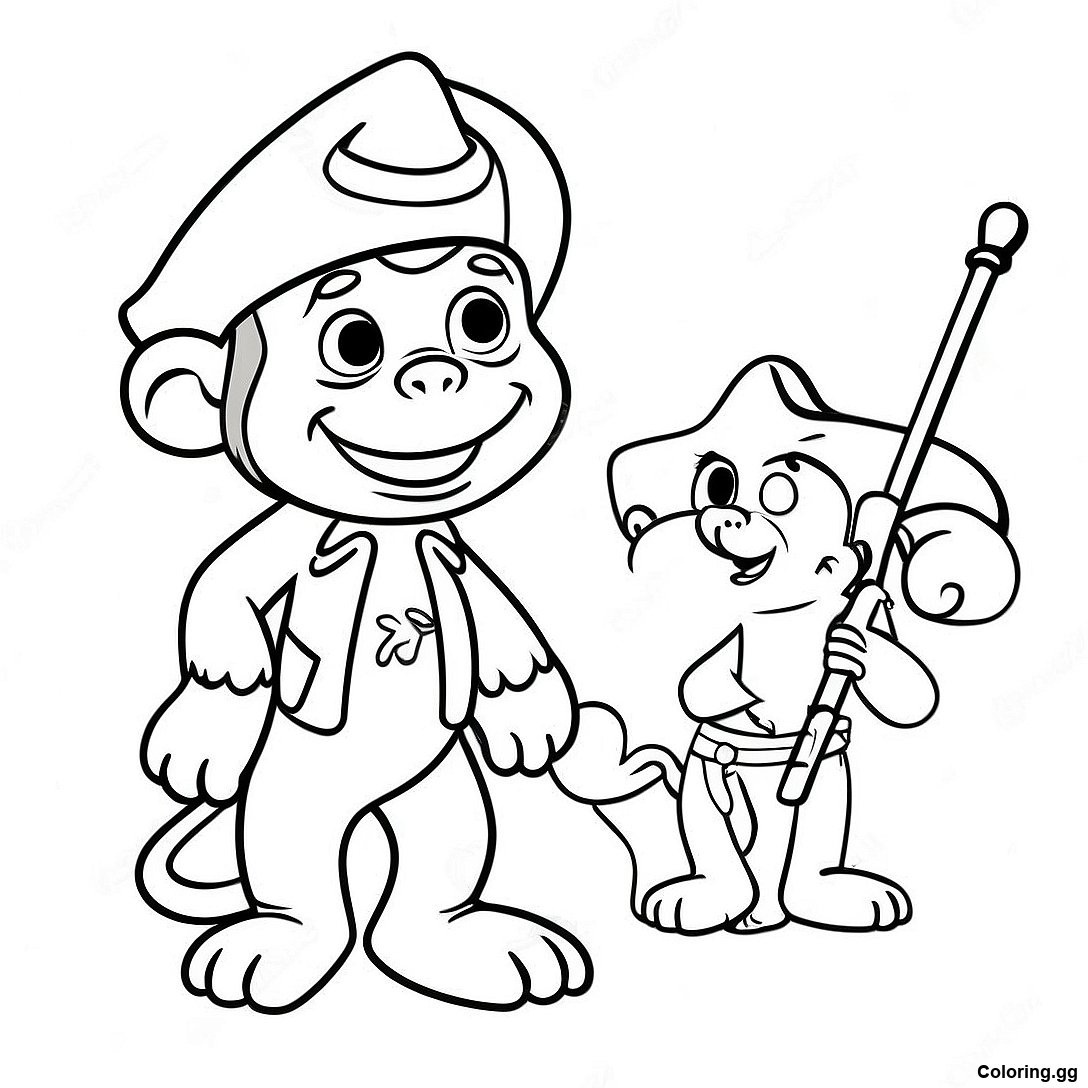 जिज्ञासु जॉर्ज एक समुद्री डाकू के कपड़े में रंग भरने वाला पृष्ठ का प्रिंट करने योग्य PDF डाउनलोड करें