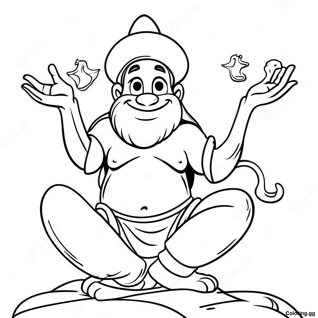 जिन्न इच्छाएँ पूरी करते हुए रंग भरने वाला पृष्ठ का प्रिंट करने योग्य PDF डाउनलोड करें