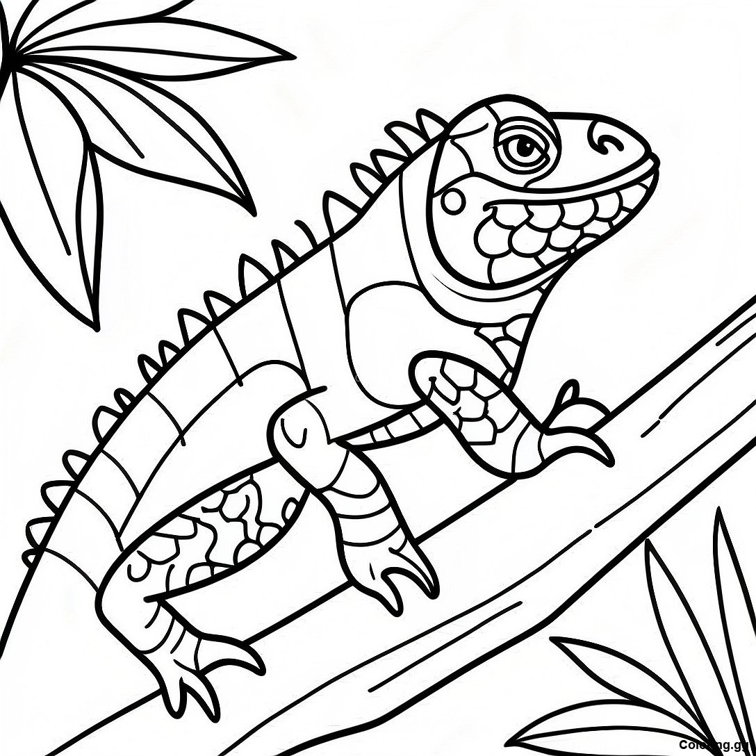 जंगल में रंग-बिरंगी इगुआना रंग भरने वाला पृष्ठ का प्रिंट करने योग्य PDF डाउनलोड करें