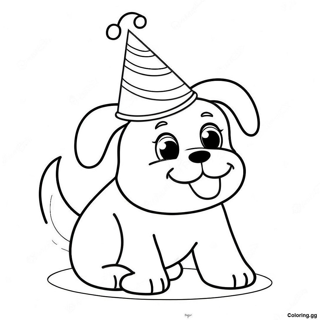 जन्मदिन की टोपी के साथ खेलता हुआ कुत्ता रंग भरने वाला पृष्ठ