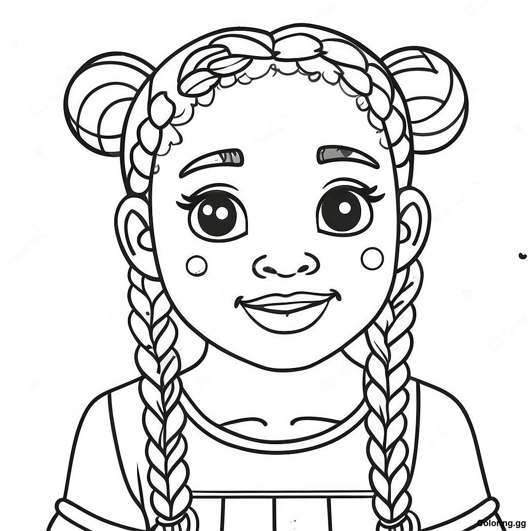 काले बालों वाली प्यारी लड़की चोटी के साथ रंग भरने वाला पृष्ठ का प्रिंट करने योग्य PDF डाउनलोड करें