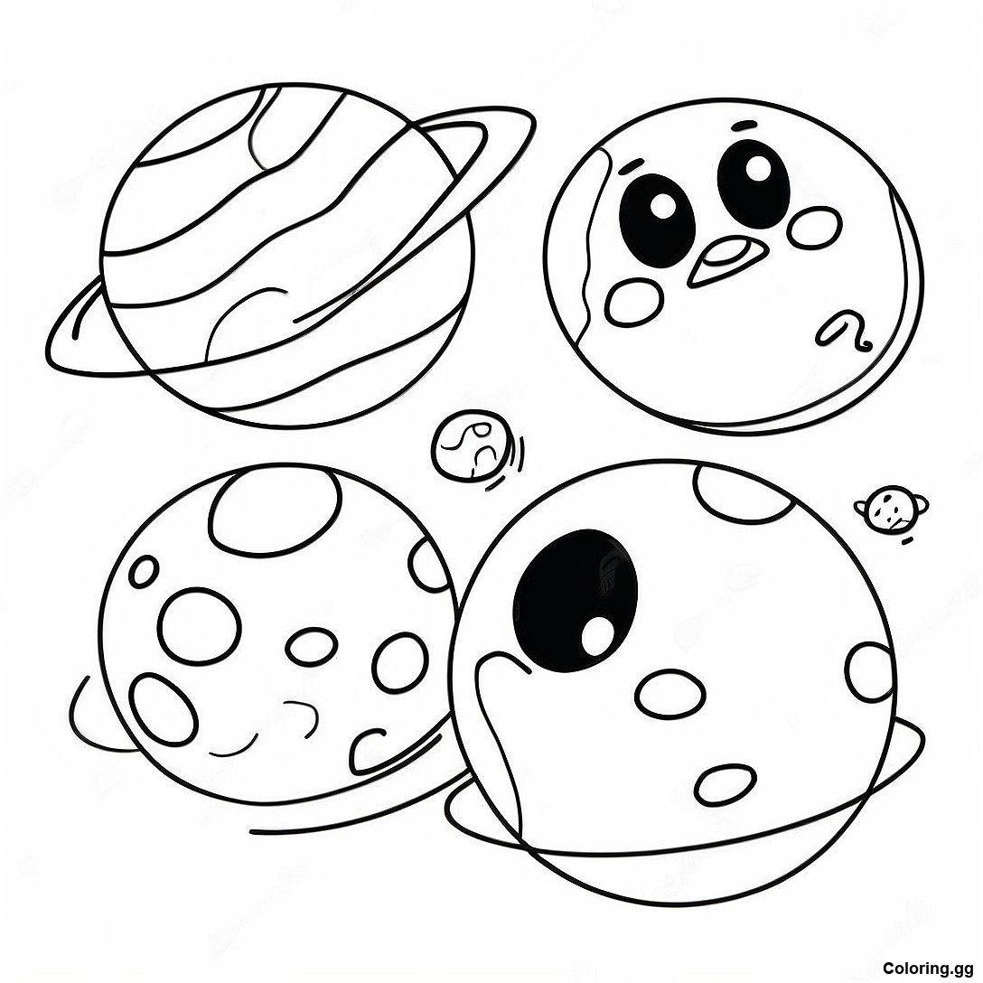 कार्टून बौने ग्रह रंग भरने वाला पृष्ठ