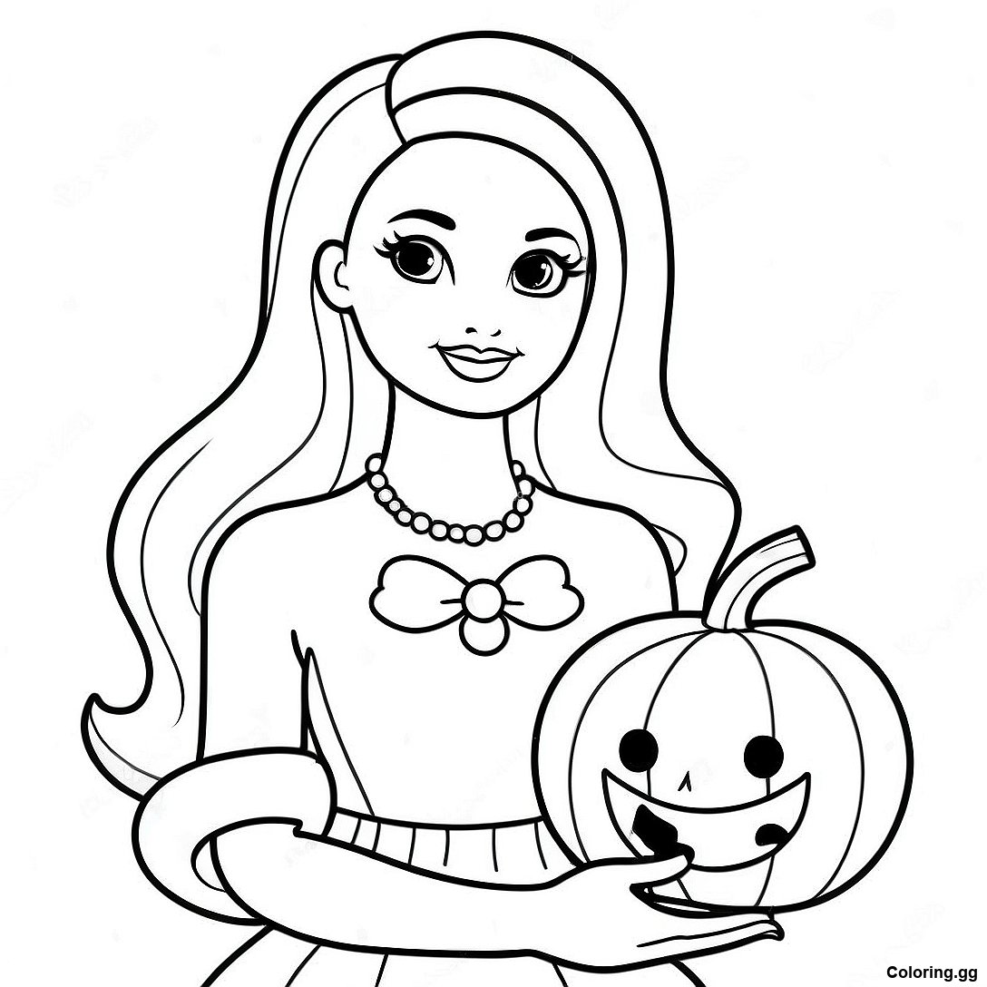 कद्दू के साथ बार्बी रंग भरने वाला पृष्ठ का प्रिंट करने योग्य PDF डाउनलोड करें