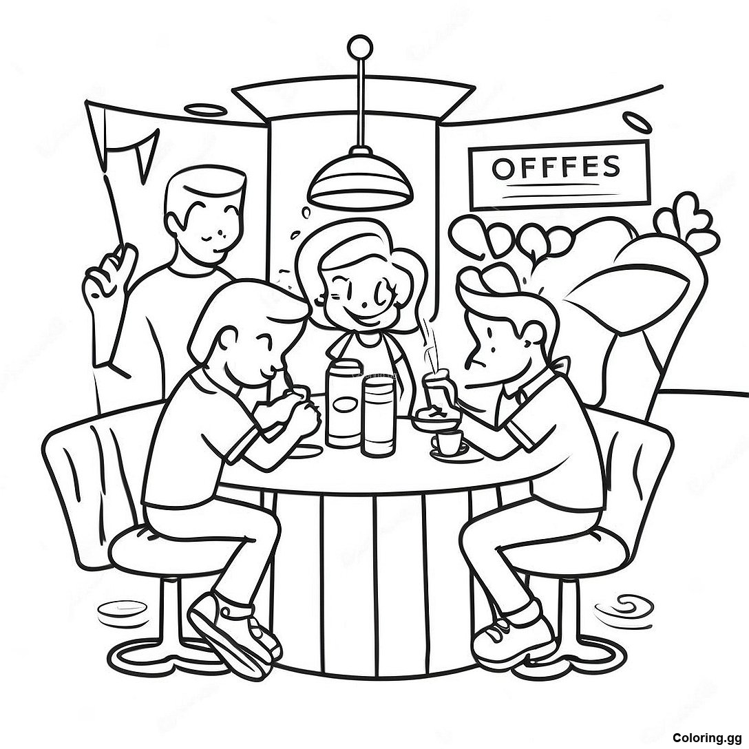 खिलवाड़ करने वाले फ्रेंड्स कॉफी शॉप रंग भरने वाला पृष्ठ का प्रिंट करने योग्य PDF डाउनलोड करें