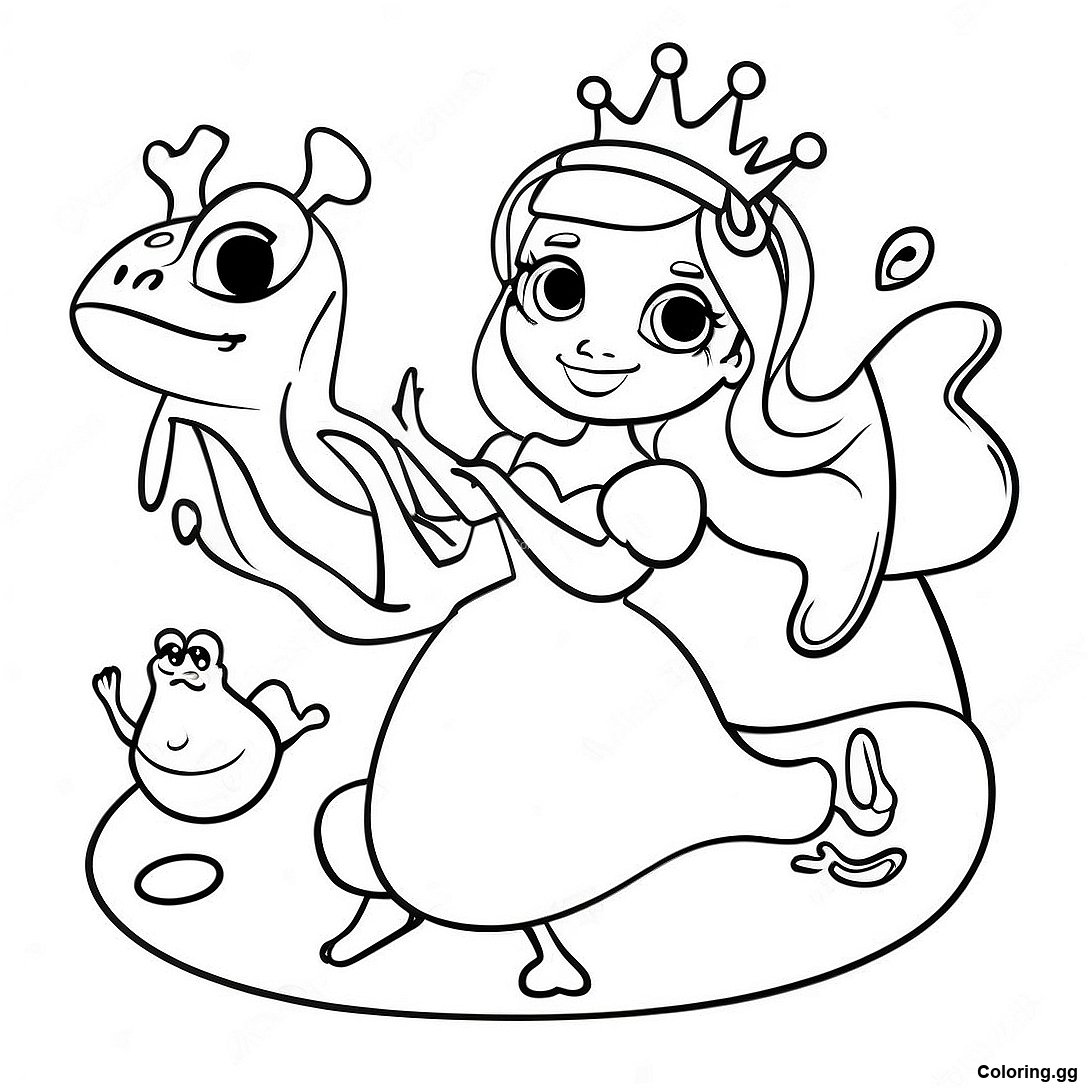 खिलवाड़ करती राजकुमारी और मेंढक के दोस्त रंग भरने वाला पृष्ठ