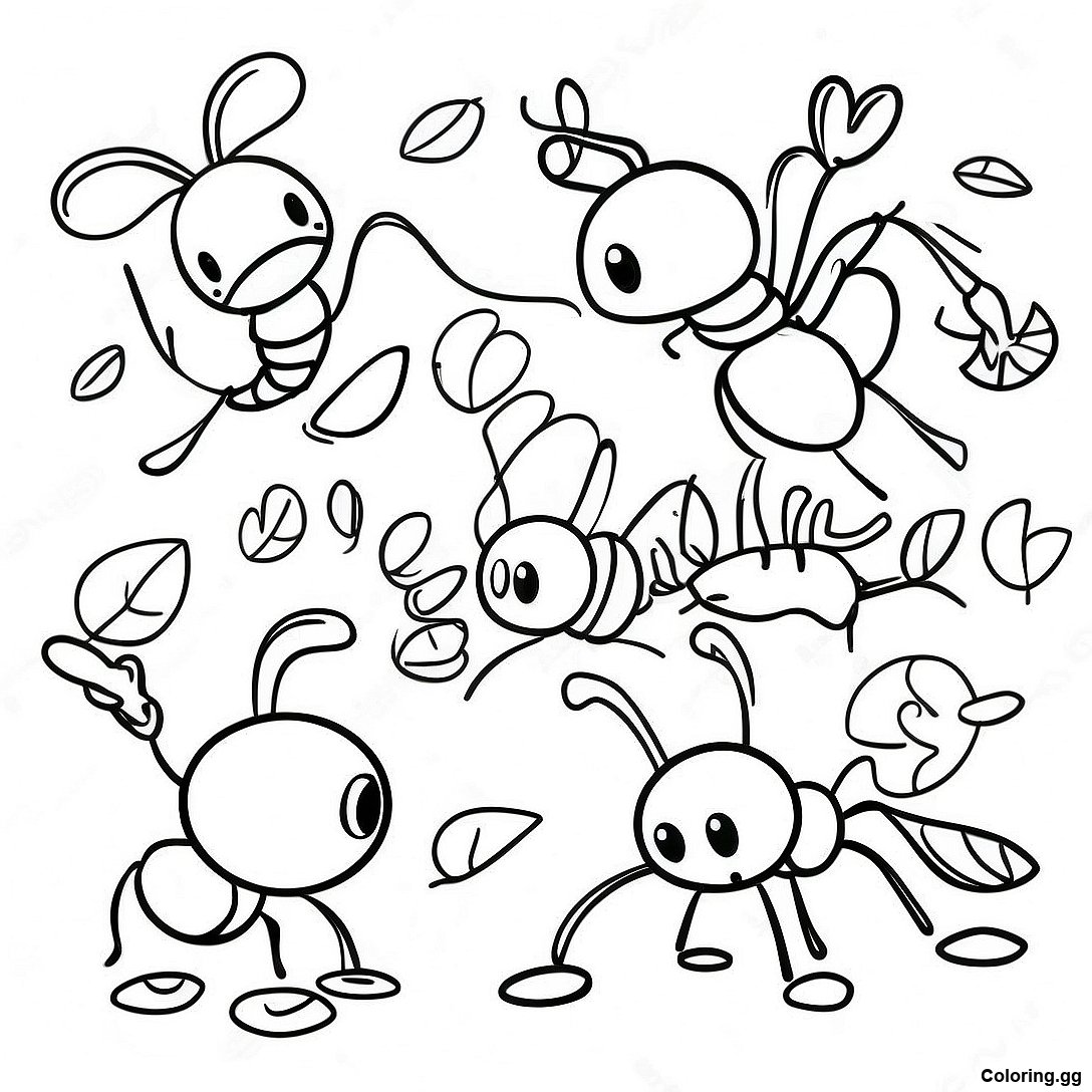 खुश चींटियाँ एक साथ मार्च करती हुई रंग भरने वाला पृष्ठ का प्रिंट करने योग्य PDF डाउनलोड करें