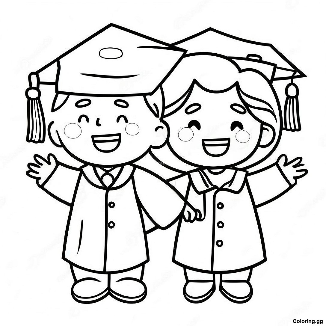 खुश किंडरगार्टन ग्रेजुएशन बच्चों का रंग भरने वाला पृष्ठ