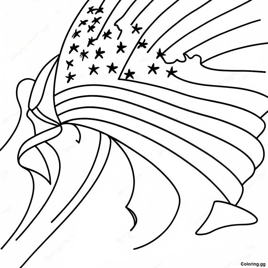 लहराता हुआ अमेरिकी ध्वज रंग भरने वाला पृष्ठ का प्रिंट करने योग्य PDF डाउनलोड करें