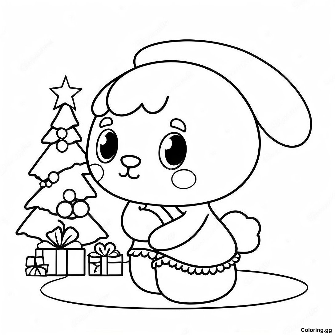 माई मेलोडी क्रिसमस ट्री को सजाते हुए रंग भरने वाला पृष्ठ