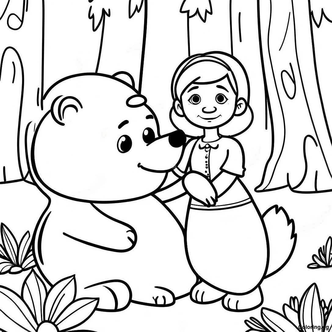 माशा और भालू जंगल में रंग भरने वाला पृष्ठ का प्रिंट करने योग्य PDF डाउनलोड करें