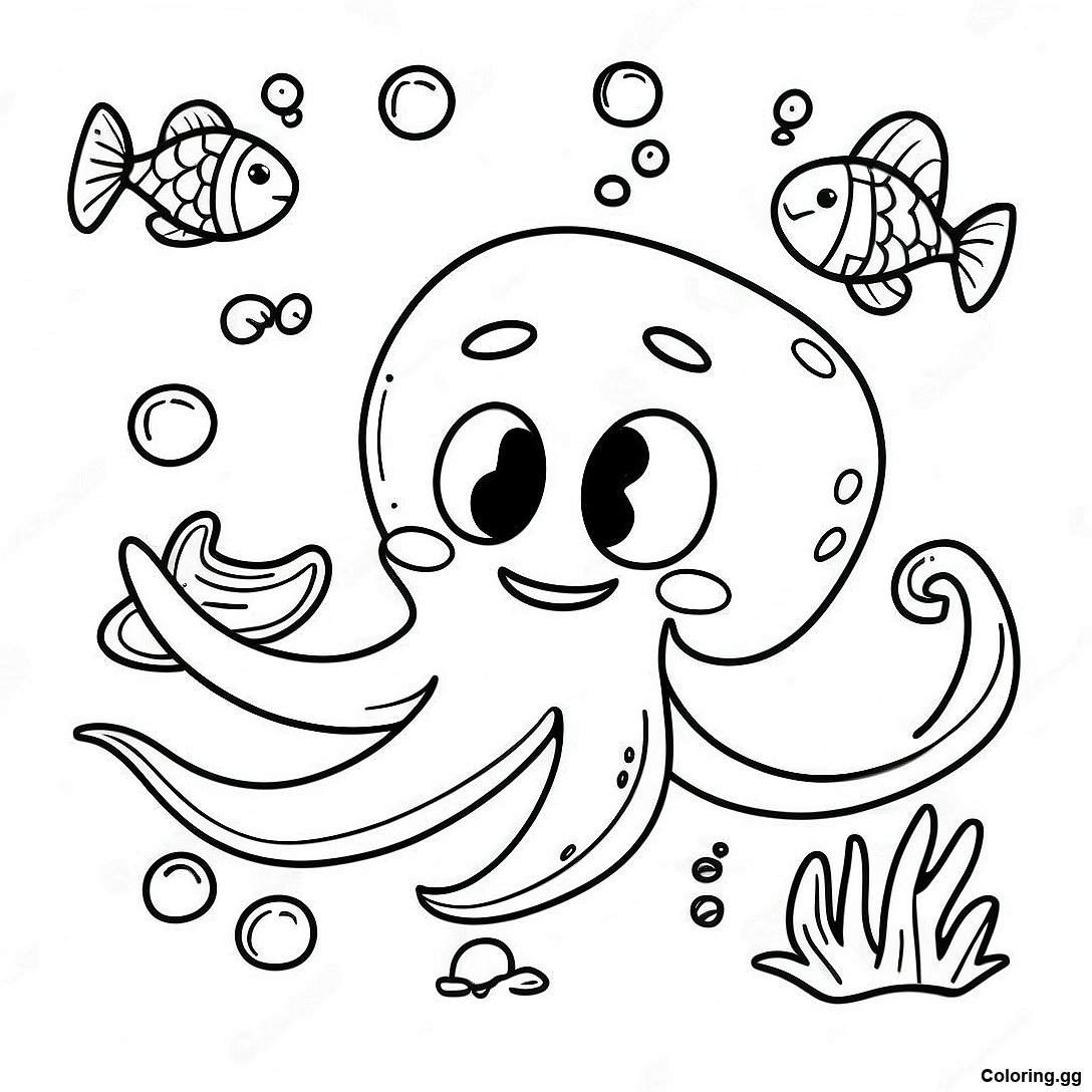 मछलियों के साथ दोस्ती कर रहे मित्रवत किशोर क्रैकेन रंग भरने वाला पृष्ठ का प्रिंट करने योग्य PDF डाउनलोड करें