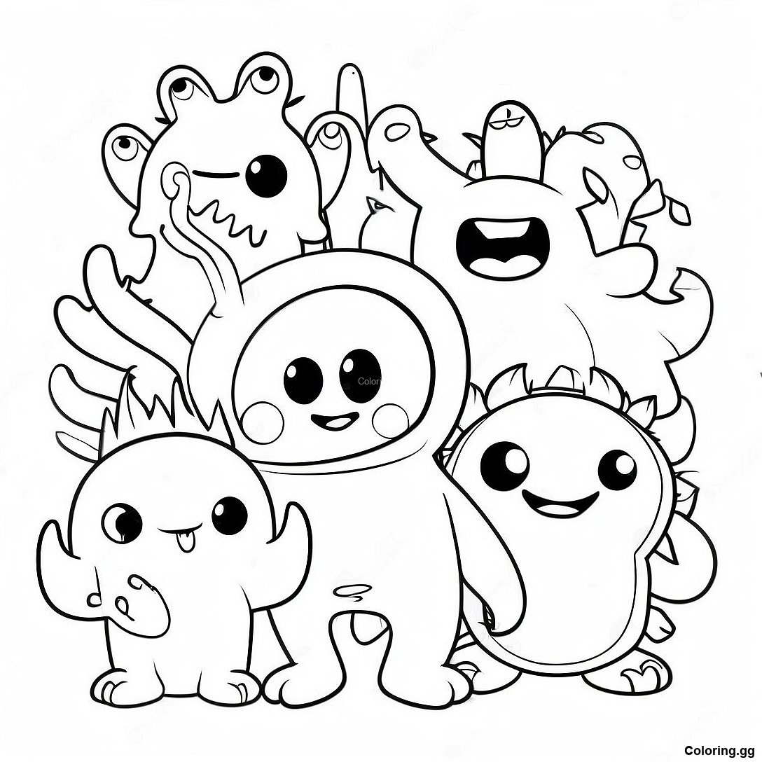 मेरे गाने वाले मॉन्स्टर्स रंगीन पात्र रंग भरने वाला पृष्ठ