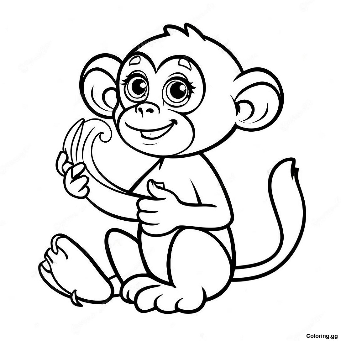 मज़ेदार बंदर केला खा रहा रंग भरने वाला पृष्ठ का प्रिंट करने योग्य PDF डाउनलोड करें