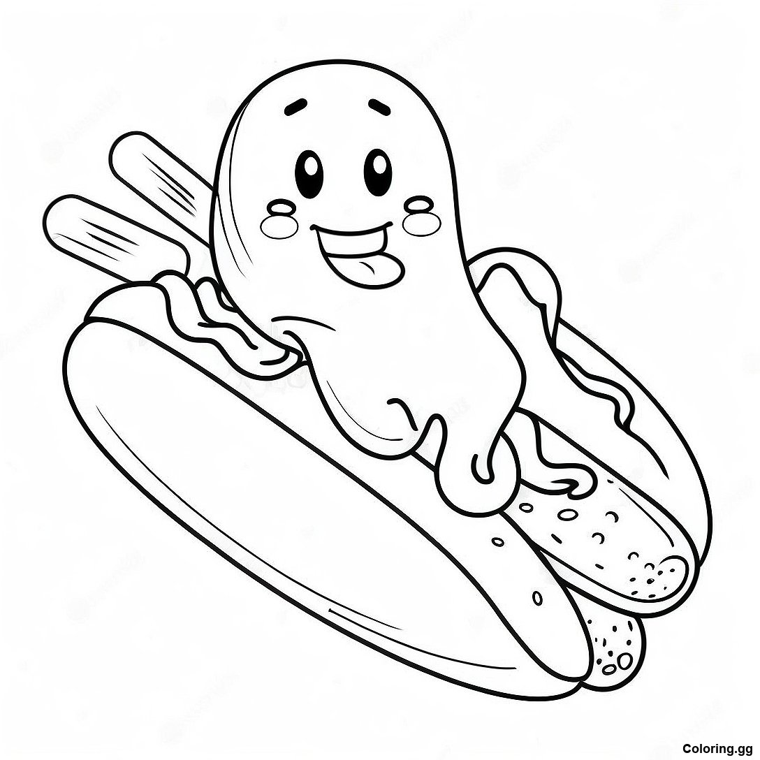 मुस्कान के साथ प्यारा हॉट डॉग रंग भरने वाला पृष्ठ