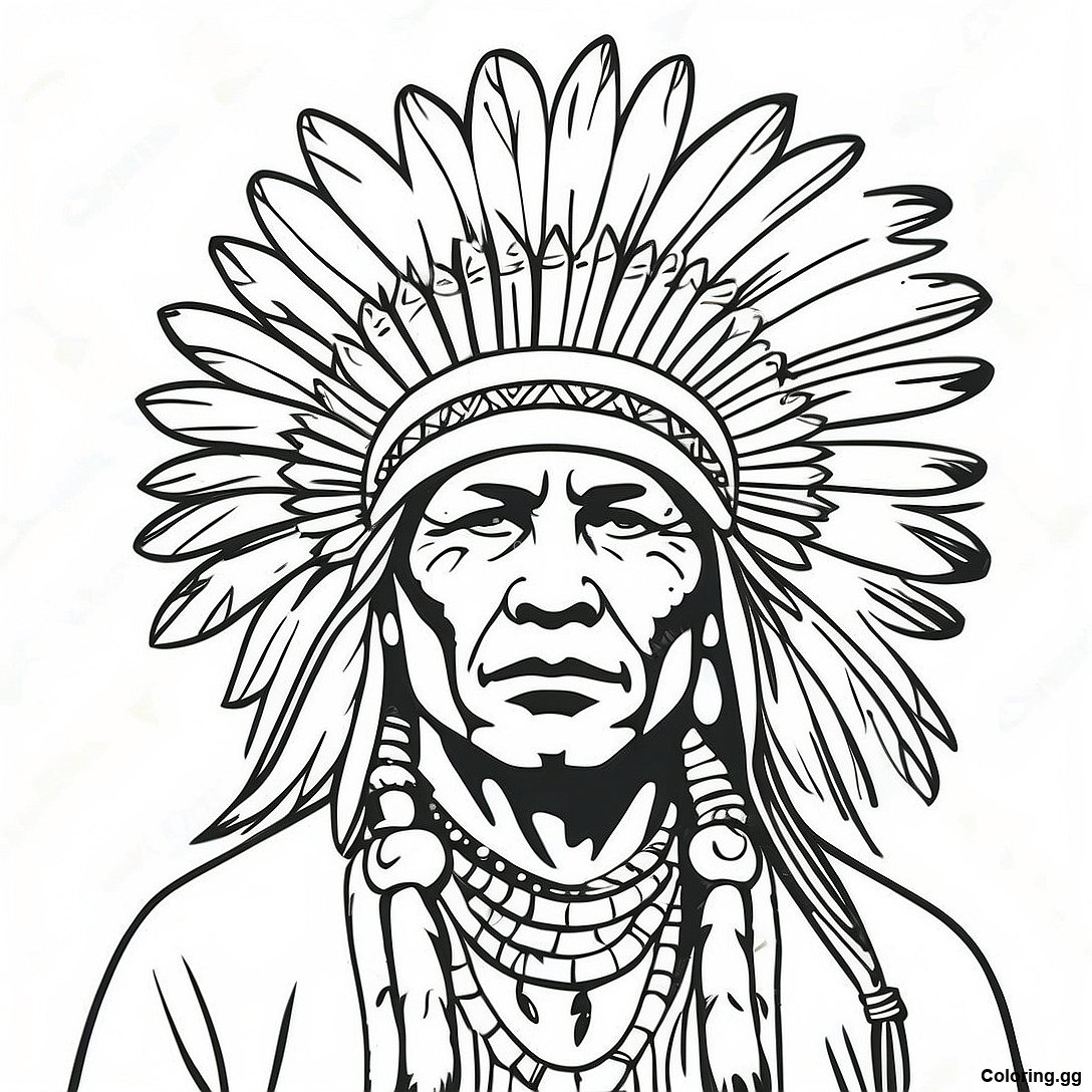 Native American प्रमुख पारंपरिक पोशाक में रंग भरने वाला पृष्ठ का प्रिंट करने योग्य PDF डाउनलोड करें