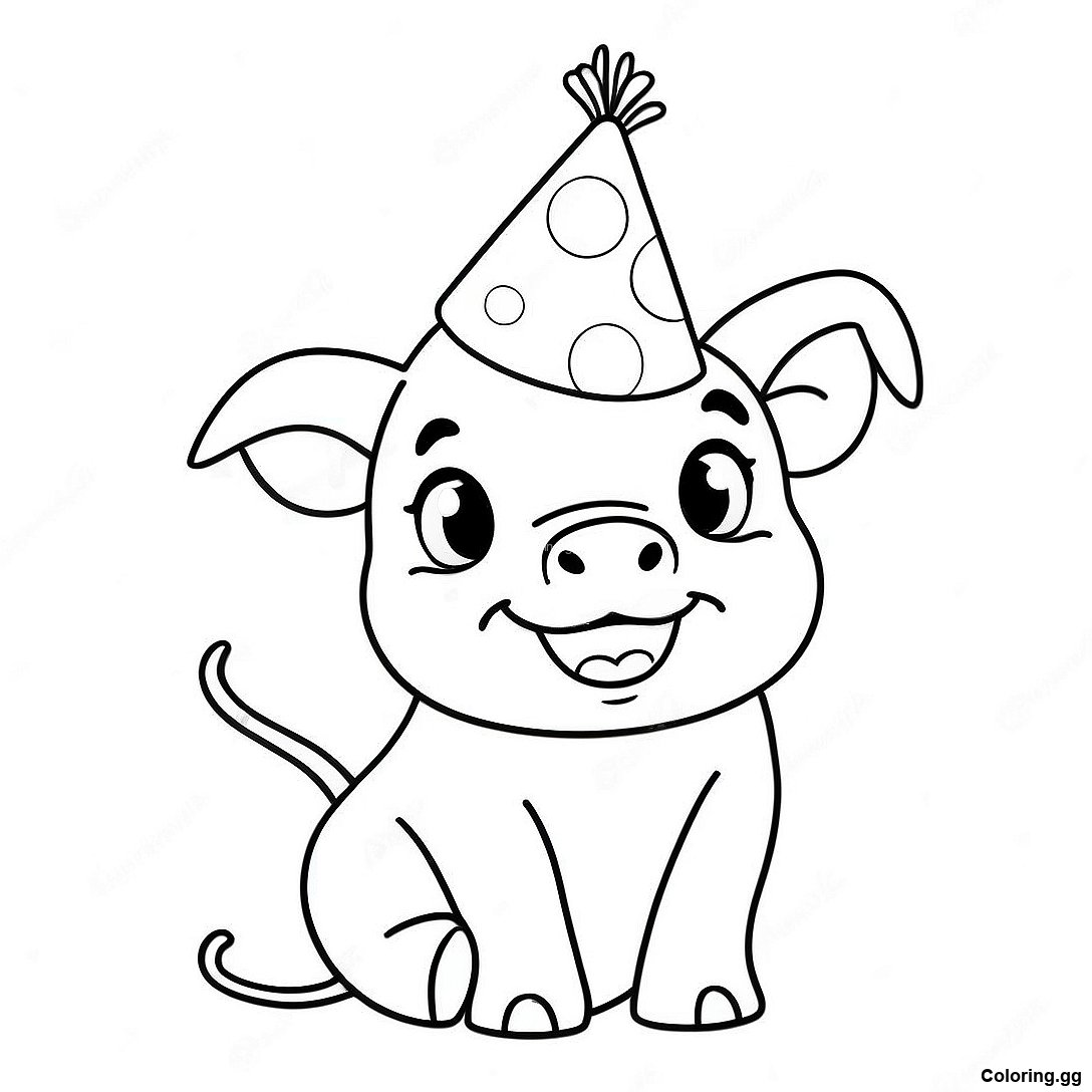 पार्टी हैट के साथ पिगलेट रंग भरने वाला पृष्ठ