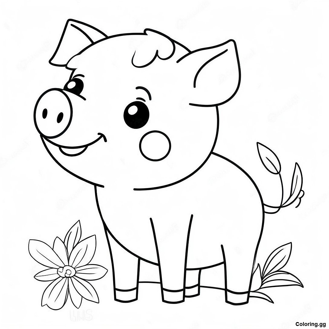 फूलों के साथ प्यारा पिग रंग भरने वाला पृष्ठ का प्रिंट करने योग्य PDF डाउनलोड करें