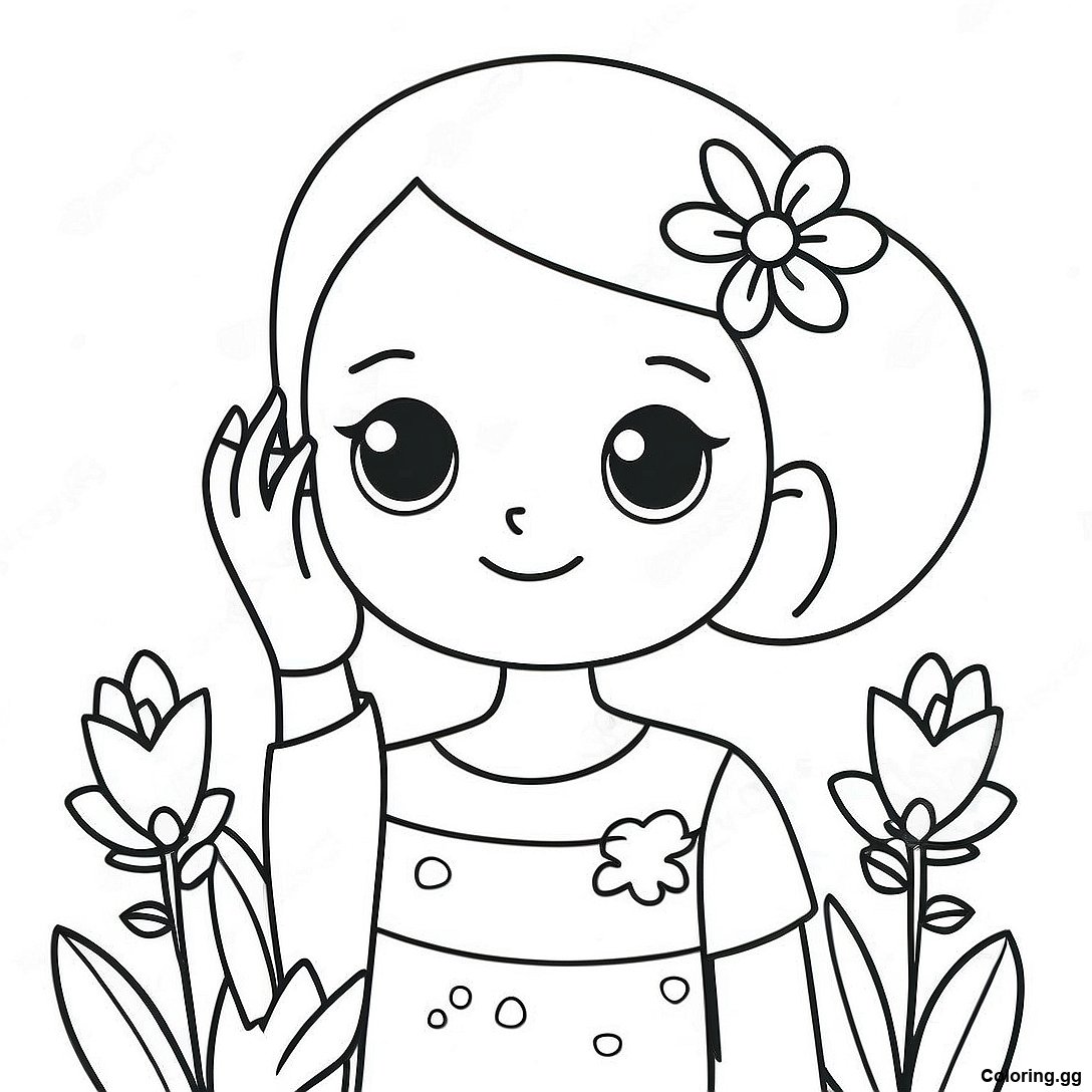 फूलों के साथ प्यारी लड़की रंग भरने वाला पृष्ठ का प्रिंट करने योग्य PDF डाउनलोड करें