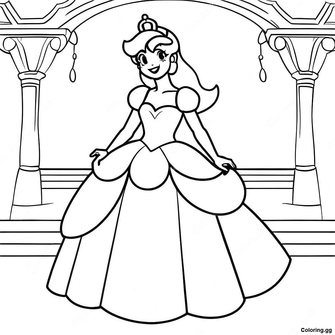 राजकुमारी पीच एक भव्य बॉल में रंग भरने वाला पृष्ठ का प्रिंट करने योग्य PDF डाउनलोड करें