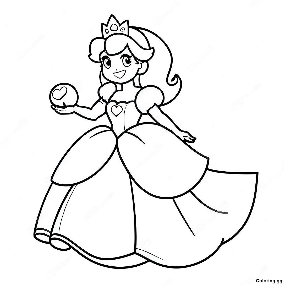 राजकुमारी पीच एक चमकदार पोशाक में रंग भरने वाला पृष्ठ