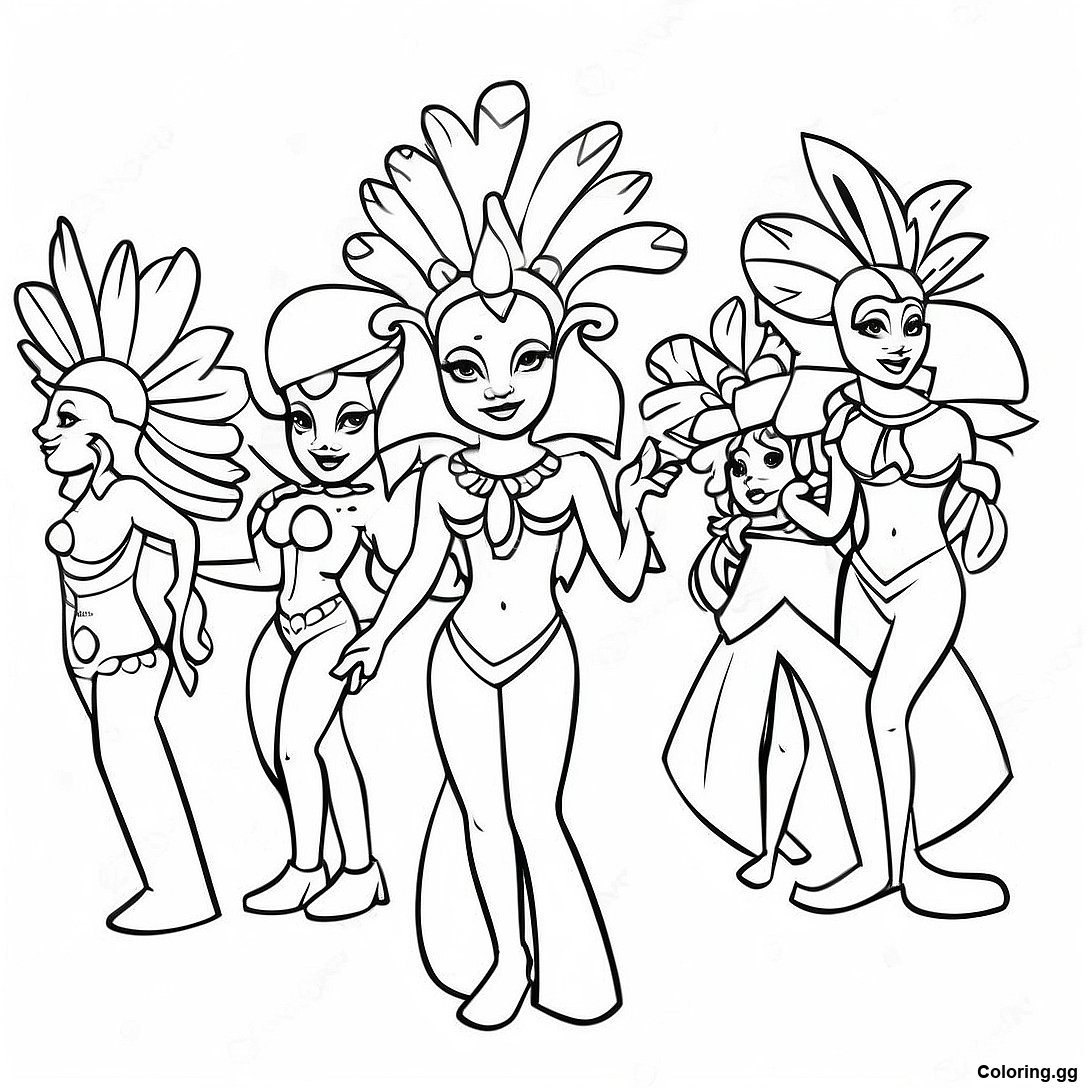 रियो कार्निवल परेड रंग भरने वाला पृष्ठ