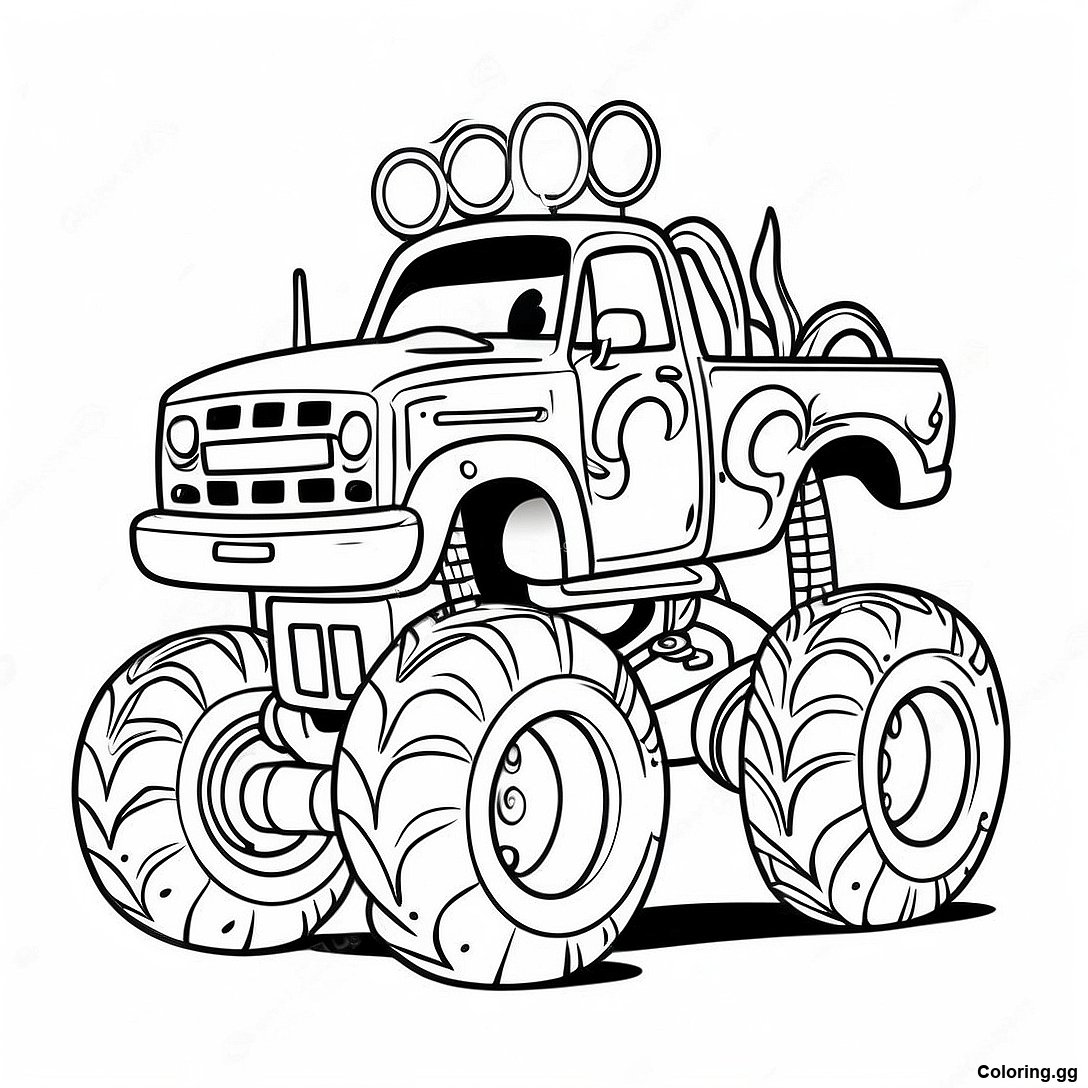 रंगीन मॉन्स्टर ट्रक रंग भरने वाला पृष्ठ
