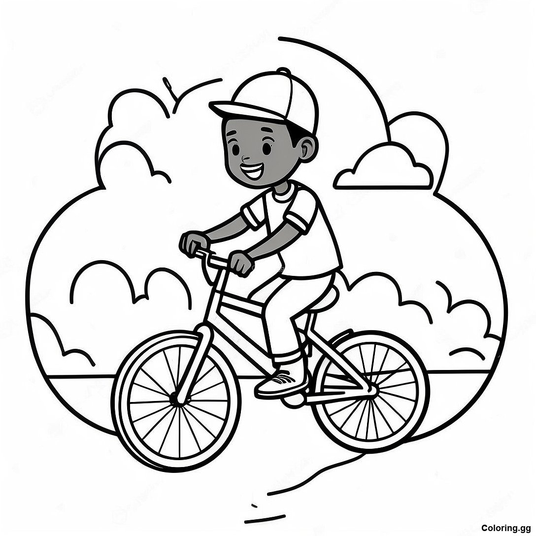 साइकिल चलाते हुए काला लड़का रंग भरने वाला पृष्ठ का प्रिंट करने योग्य PDF डाउनलोड करें
