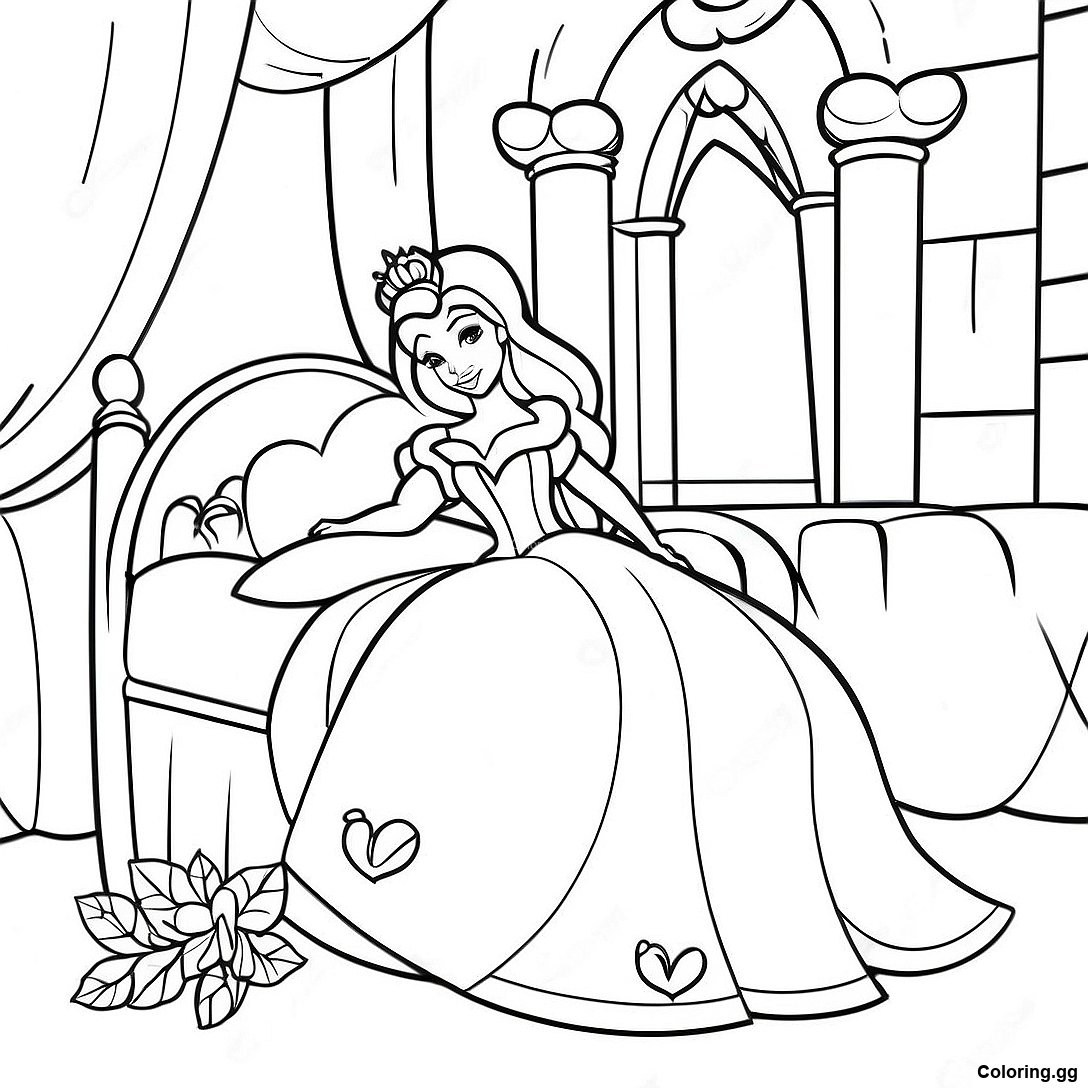शानदार सोती हुई सुंदरता एक महल में रंग भरने वाला पृष्ठ