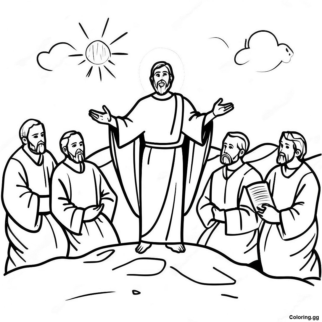 शिष्यों के साथ पर्वत पर उपदेश रंग भरने वाला पृष्ठ का प्रिंट करने योग्य PDF डाउनलोड करें