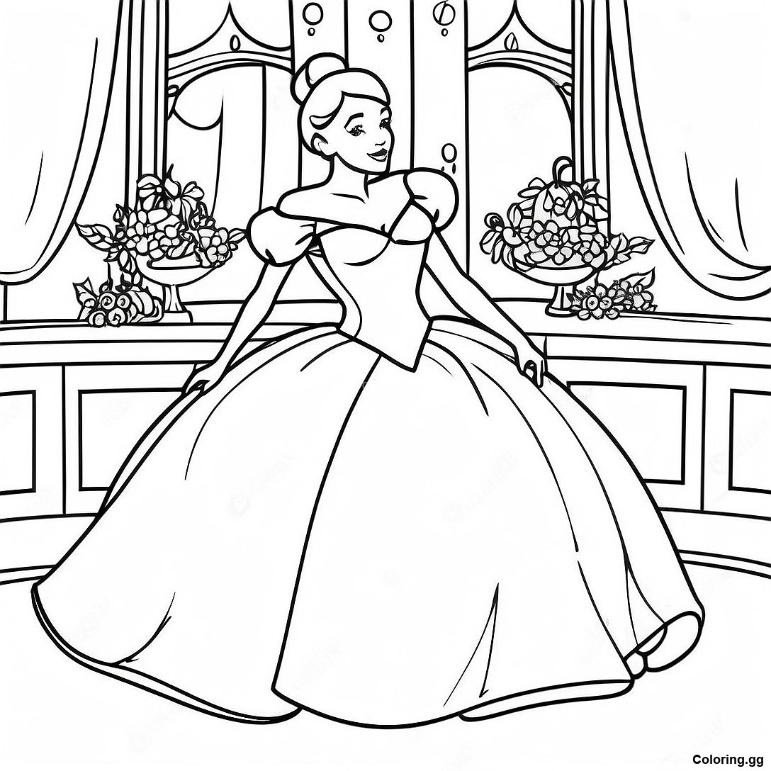 सिंड्रेला अपनी चमकदार गाउन में रंग भरने वाला पृष्ठ का प्रिंट करने योग्य PDF डाउनलोड करें