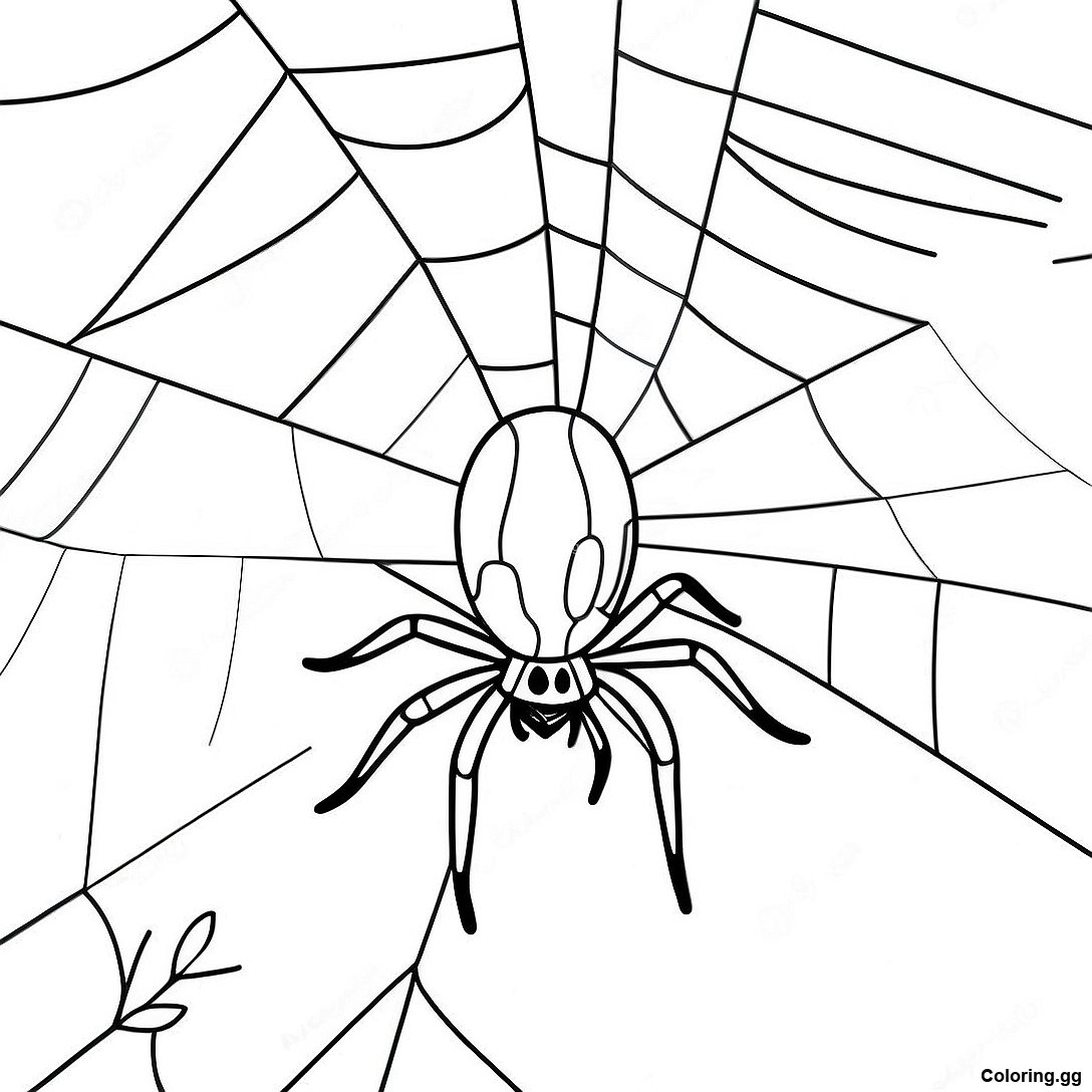स्पूकी हैलोवीन मकड़ी जाले में रंग भरने वाला पृष्ठ