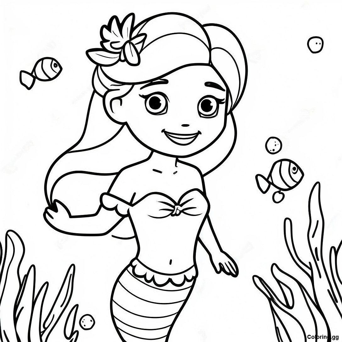 सुंदर एल्सा जलपरी कोरल रीफ में रंग भरने वाला पृष्ठ का प्रिंट करने योग्य PDF डाउनलोड करें