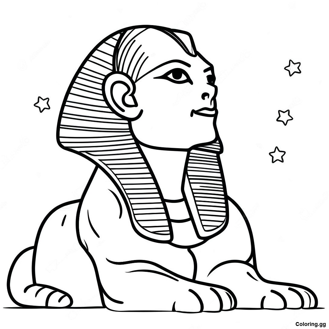 तारों भरे आसमान के नीचे स्फिंक्स रंग भरने वाला पृष्ठ