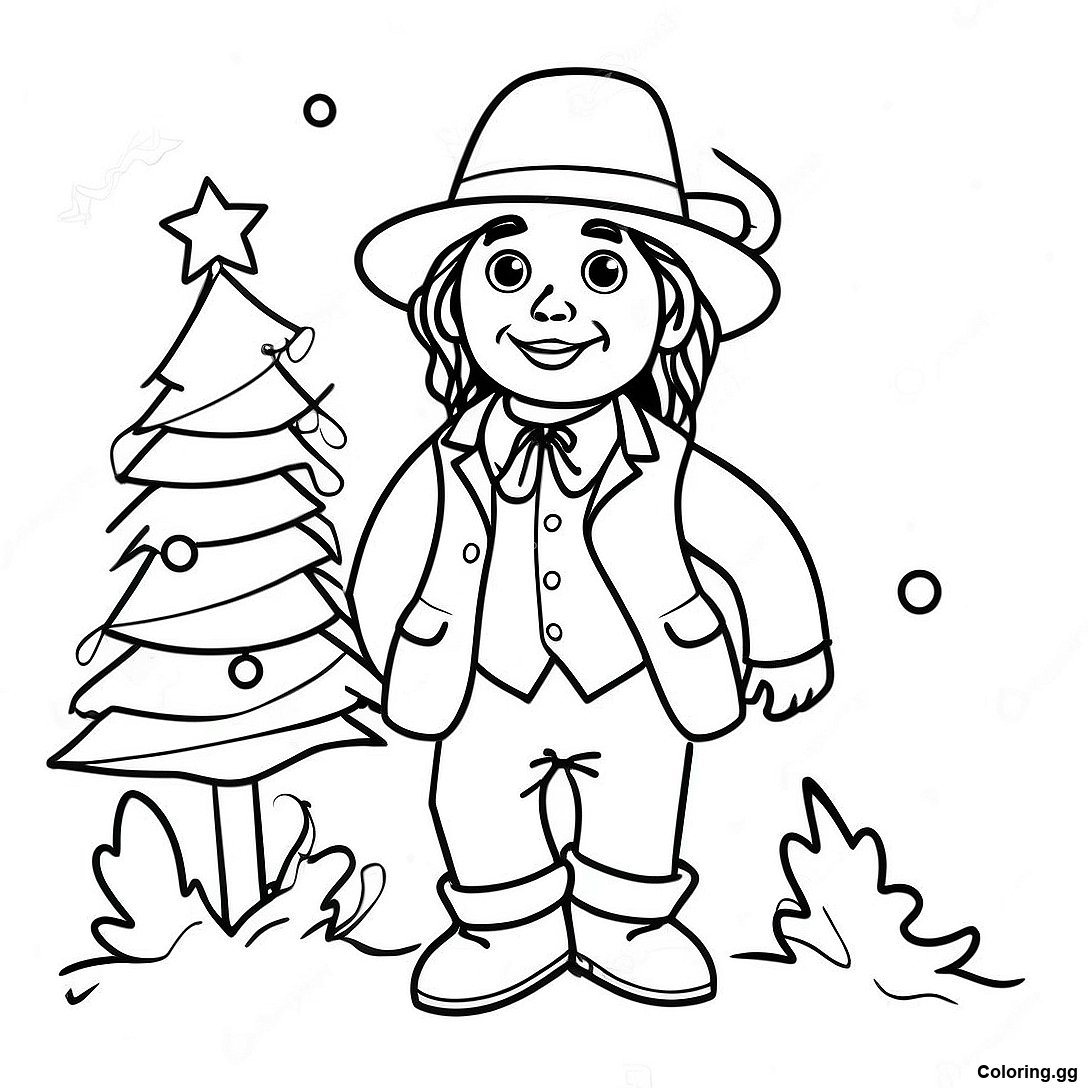 टाइनी टिम क्रिसमस ट्री के साथ रंग भरने वाला पृष्ठ