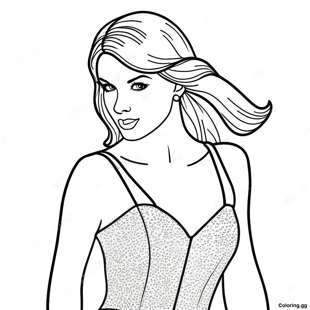 टेलर स्विफ्ट चमकदार ड्रेस में रंग भरने वाला पृष्ठ का प्रिंट करने योग्य PDF डाउनलोड करें