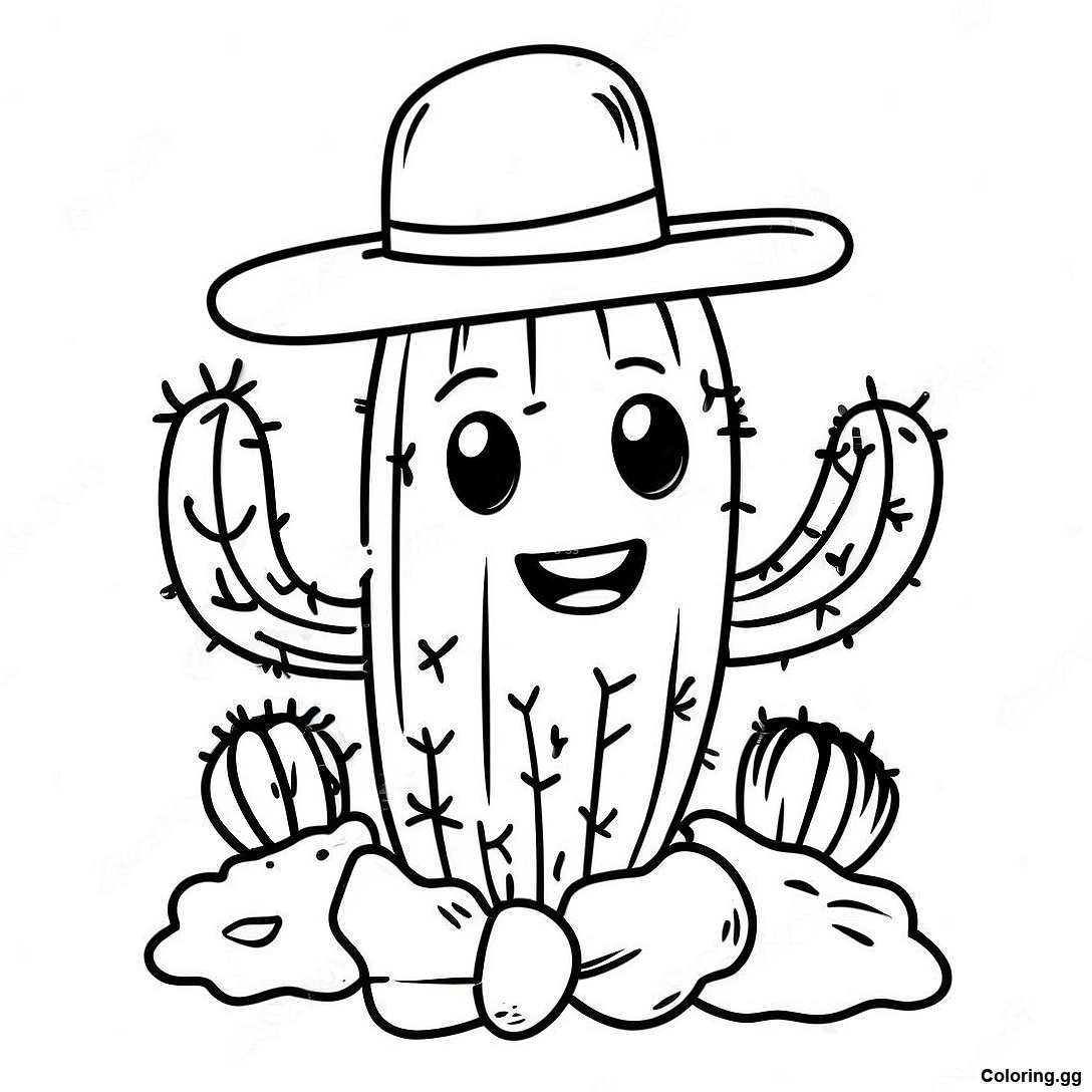 टोपी के साथ कैक्टस रंग भरने वाला पृष्ठ का प्रिंट करने योग्य PDF डाउनलोड करें