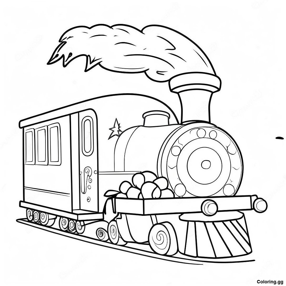 उपहारों के साथ रंगीन क्रिसमस ट्रेन रंग भरने वाला पृष्ठ