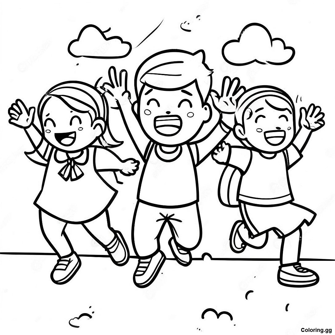 उत्साहित बच्चे स्कूल का समय खत्म रंग भरने वाला पृष्ठ