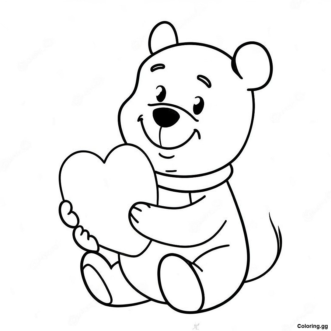 विन्नी द पूह एक दिल पकड़े हुए रंग भरने वाला पृष्ठ का प्रिंट करने योग्य PDF डाउनलोड करें